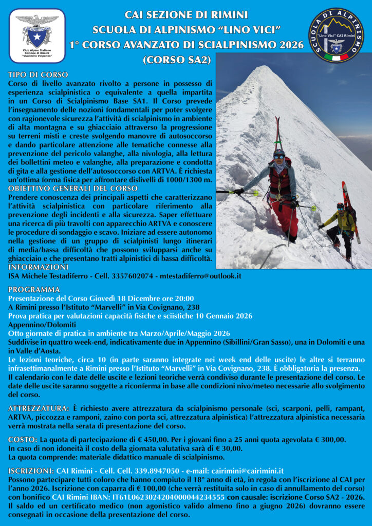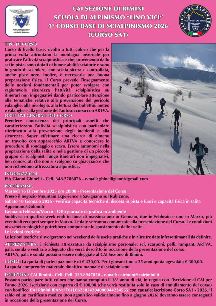 Quota di partecipazione € 60,00 comprensiva di cena, pernottamento e colazione presso il rifugio e del contributo di € 5,00 euro al CAI Sezione di Rimini previsto per le uscite di più giorni. Iscrizioni entro venerdì 10 ottobre 2025 con caparra di € 25,00. Numero massimo 18 partecipanti. Riunione organizzativa in sede giovedì 16 ottobre alle ore 21:00. Partenza con mezzi propri alle ore 07:30.